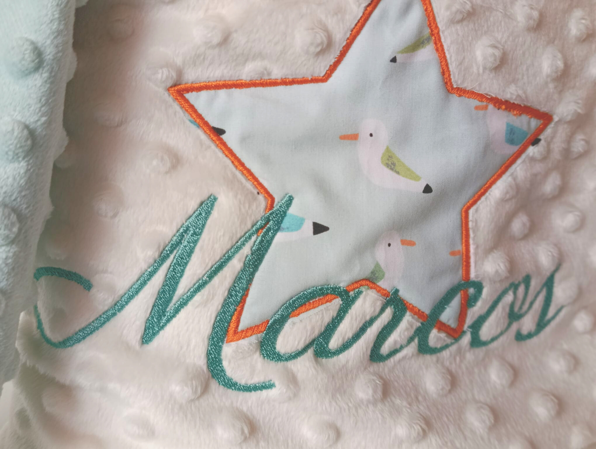 La Canastilla Básica Sueño Gaviotas 🕊️✨ es el regalo perfecto para dar la bienvenida al bebé con suavidad y estilo. Incluye una manta y un doudou de la Colección Gaviotas, confeccionados a mano en nuestro taller con tejidos suaves, delicados y respetuosos con su piel. Ambos pueden personalizarse con el nombre del bebé —no olvides añadirlo en el recuadro correspondiente— para convertir el detalle en un recuerdo único y lleno de ternura. 🤍✨