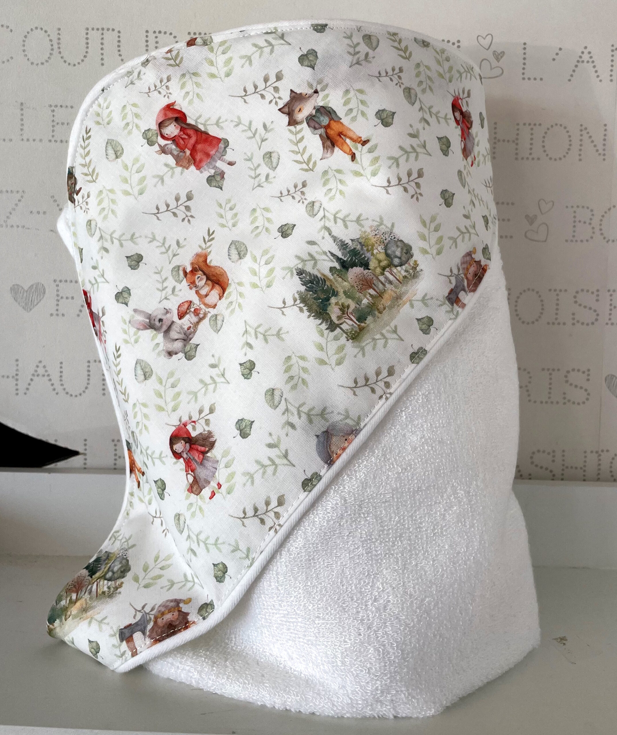 Nuestra capa de baño Caperucita está confeccionada en algodón de alta calidad, perfecta para cuidar la piel del bebé tras el baño.